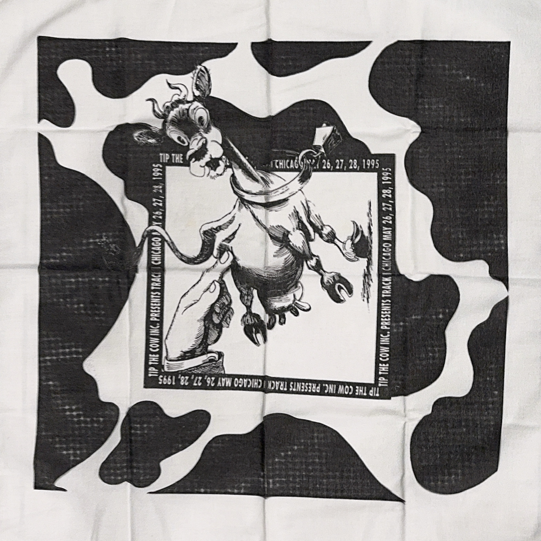 a scan of a black and white bandana souvenir from the 12th IAGSDC convention, Track II Chicago in 1995