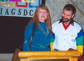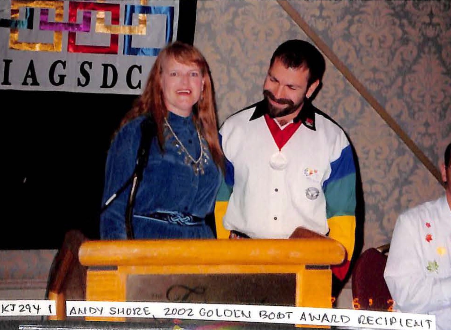 2002 Golden Boot presentation presenter Betsy Gotta and recipient Andy Shore